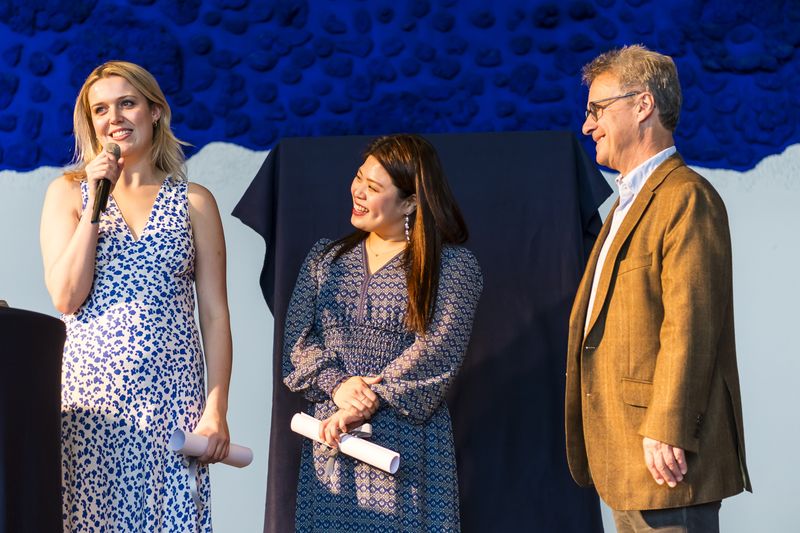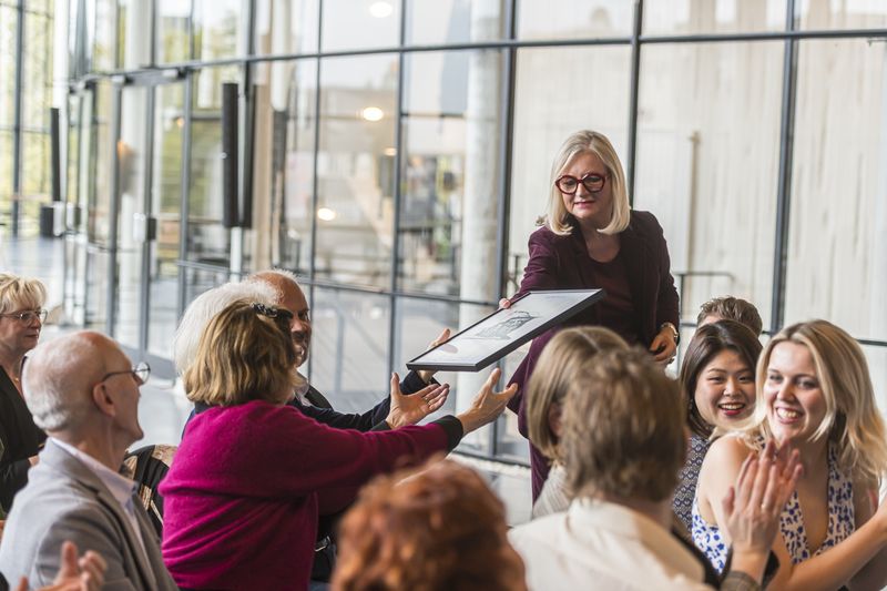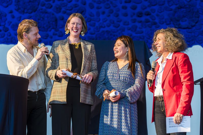 Am Sonntag, dem 12. Oktober besuchten zahlreiche interessierte fmt-Mitglieder die Verleihung des fünften fmt-Bühnenpreises. im Foyer des MiR. Als Künstler durften wir Heijin Kim, Katherine Allen, Lina Edlin, Sebastian Schiller und am Askan Geisler am Flügel begrüßen. Das Grußwort für das Musiktheater hielt Geschäftsführer Tobias Werner, der sich für das Engagement des Fördervereins bedankte. Die Vorsitzende Christiane Wilke zeigte sich erfreut über die gute Beteiligung an der Wahl, die zu einem sehr ausgewogenem Ergebnis geführt hat. Sieger der Wahl ist auf dem ersten Platz die Oper und deutsche Uraufführung INNOCENCE, den zweiten Platz belegt die wunderbare Inszenierung von „LA BOHEME“ und mit dem dritten Platz wurde „HÄNSEL und GRETEL“ bedacht.